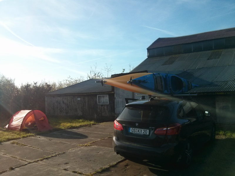 Das erste Mal mit den eigenen Booten auf langer Reise. Es hat alles bestens geklappt, der Dachgepäckträger war ausreichend stabil, die Gurte haben gut gehalten und die Boote waren bombenfest – nichts hat gewackelt und wir sind heile an unserem Zielort angekommen.