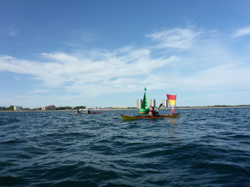 Der Wind hielt sich in Grenzen, die leichten Wellen waren bis zum Leuchtturm Staberhuk noch passend um das Surfen zu lernen. Erst nach Umrundung von Staberhuk gab es Gegenwind, der aber zu ertragen war. Vorbei an der Marineküstenstation Marienleuchte ging es durch teilweise kabbeliges Wasser in Richtung Teichhof wo wir glücklicherweise eine Unterkunft für die Nacht finden konnten.