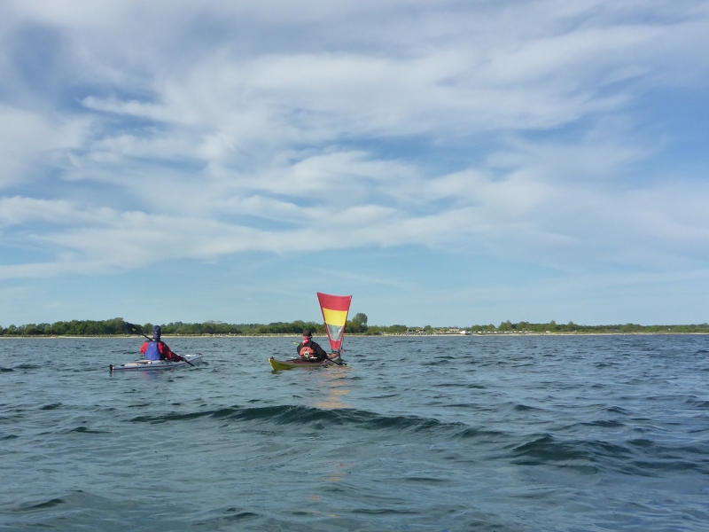 Der Wind hielt sich in Grenzen, die leichten Wellen waren bis zum Leuchtturm Staberhuk noch passend um das Surfen zu lernen. Erst nach Umrundung von Staberhuk gab es Gegenwind, der aber zu ertragen war. Vorbei an der Marineküstenstation Marienleuchte ging es durch teilweise kabbeliges Wasser in Richtung Teichhof wo wir glücklicherweise eine Unterkunft für die Nacht finden konnten.