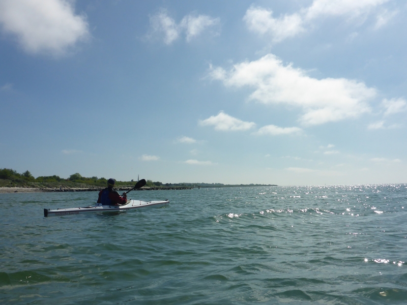 Der Wind hielt sich in Grenzen, die leichten Wellen waren bis zum Leuchtturm Staberhuk noch passend um das Surfen zu lernen. Erst nach Umrundung von Staberhuk gab es Gegenwind, der aber zu ertragen war. Vorbei an der Marineküstenstation Marienleuchte ging es durch teilweise kabbeliges Wasser in Richtung Teichhof wo wir glücklicherweise eine Unterkunft für die Nacht finden konnten.