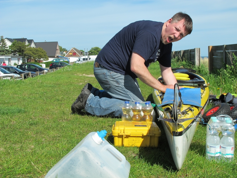 Der Wind hielt sich in Grenzen, die leichten Wellen waren bis zum Leuchtturm Staberhuk noch passend um das Surfen zu lernen. Erst nach Umrundung von Staberhuk gab es Gegenwind, der aber zu ertragen war. Vorbei an der Marineküstenstation Marienleuchte ging es durch teilweise kabbeliges Wasser in Richtung Teichhof wo wir glücklicherweise eine Unterkunft für die Nacht finden konnten.