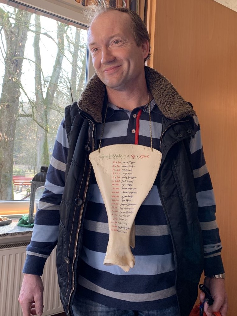 König Florian lud am 17.02.2019 zur traditionellen Grünhkohlwanderung durch das Nettetal ein. In Summe folgten dem Ruf eine Gruppe von mehr als 20 Untertanen. Pünktlich um 1000 Uhr erfolgte der Start vom Parkplatz vor Knollmeyers Mühle. Geschlossen ging es dann über die Hügel und Berge der Rumpelriesen – gesehen habe wir keine, aber die Legende besagt, dass sie nur zu sehen sind, wenn sie schlafen.